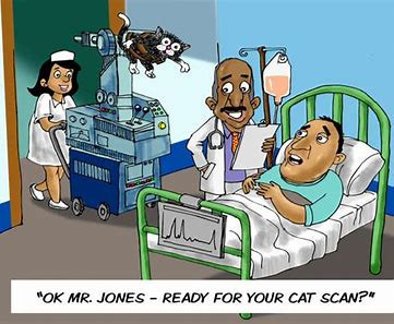 I was taken down this long hall to x-ray where I was given the famous CT-SCAN or more commonly known as the CAT-SCAN. It is a circular drum that they run your entire body thru and it tells you to hold your breath then breath at certain times, all the while making a horrendous roaring racket. In and out you go several times until you are almost deaf.