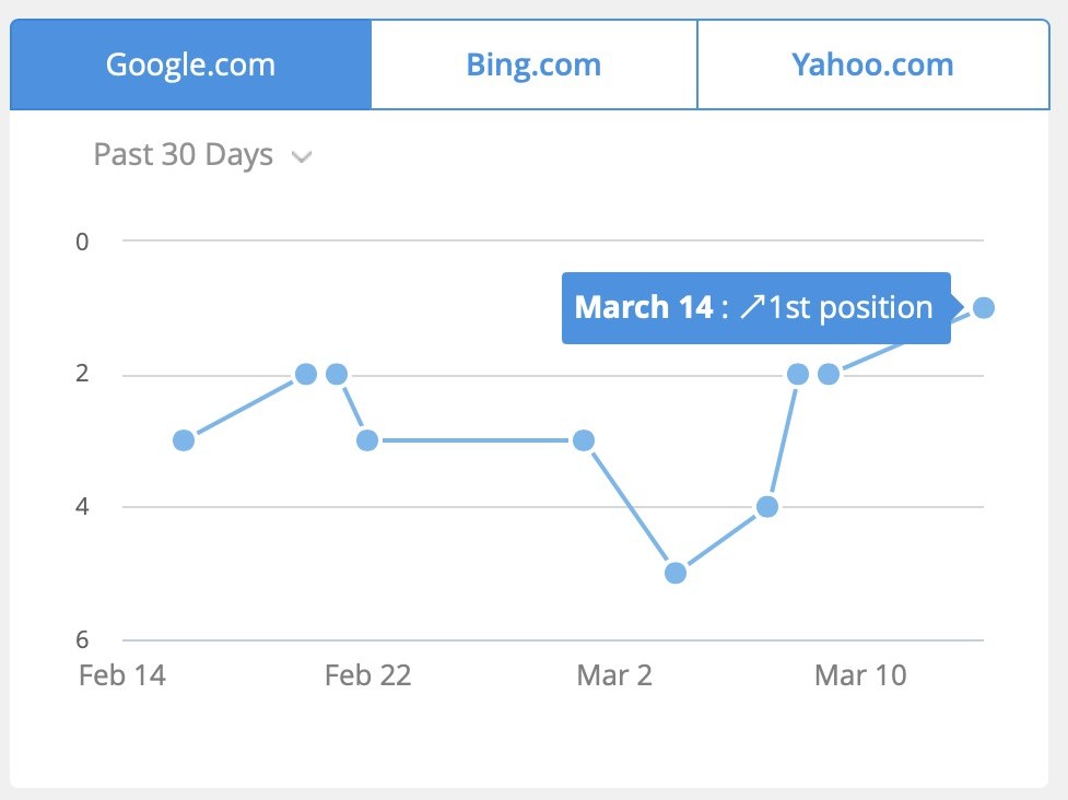 And there it was. Page 1 Position 1 on Yahoo and Bing. Great. But on Google...