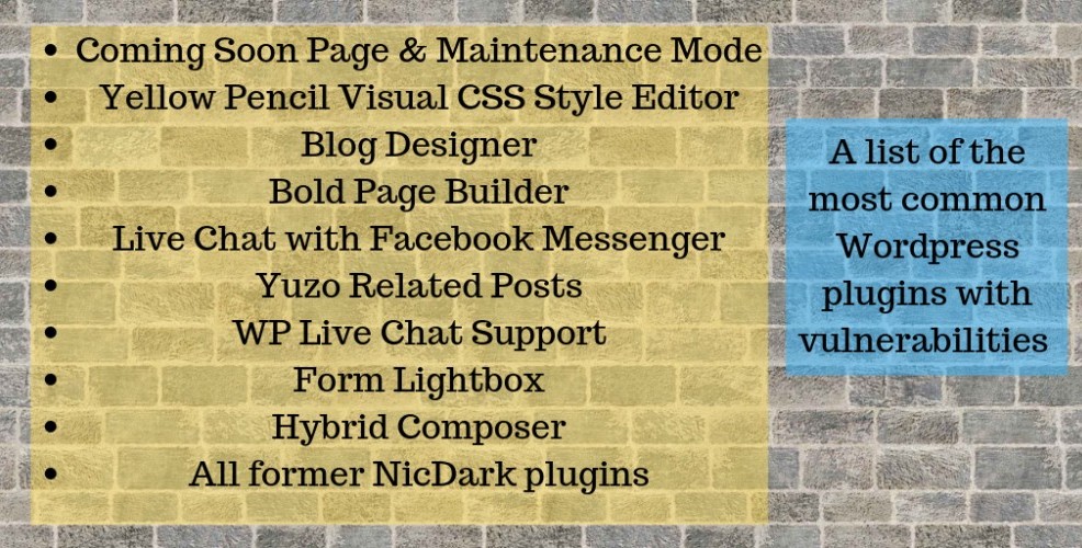 So, when I came across this list of the most common plugins with vulnerability issues, I thought I would let you all know.