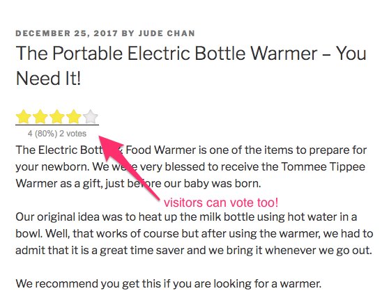 You can try installing kk Star Ratings. It is a very user-friendly plugin, is easy to customise and use. With the kk Star Ratings, your visitors can even vote on your posts/pages.