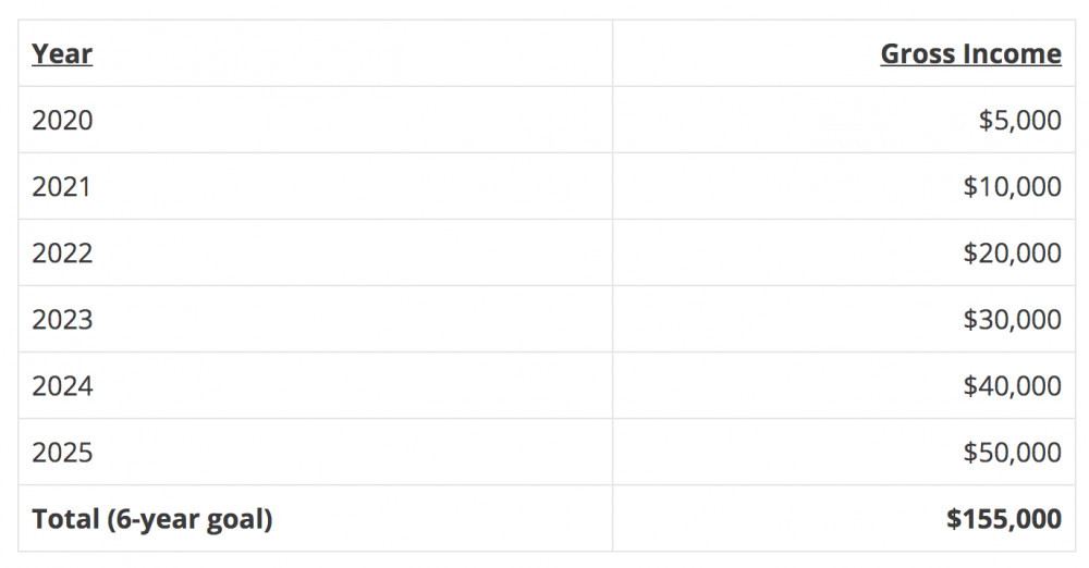 Since I "retired" from my main occupation (Banking compliance and audit), I decided to become an entrepreneur like all of us here. I set up the following income goals: