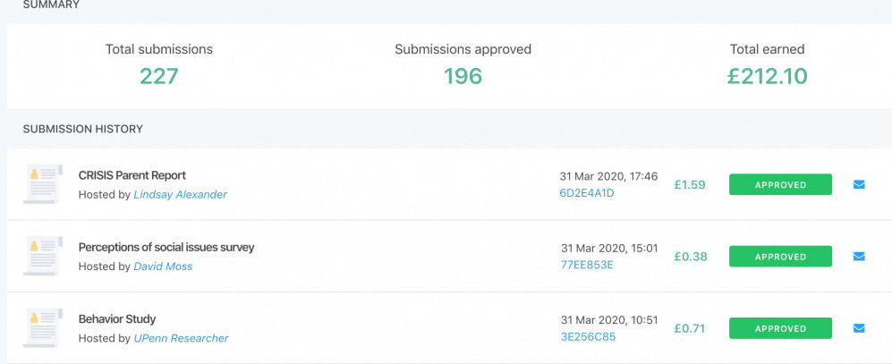 - Prolific: $244 (212*1.15-Pounds to dollars exchange rate)