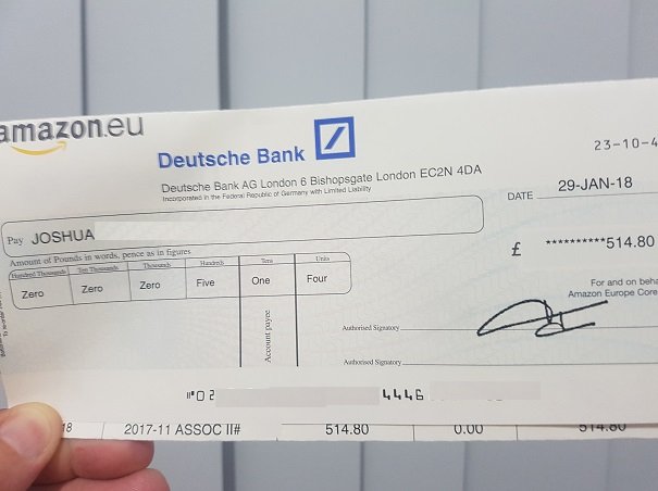 Today the 08th Feb 2018, my first cheque from being a participant in the UK amazon affiliate program arrived. This was quite a nice surprise as I had kind of forgotten about the UK amazon links. For a grand total of 514.80 pounds, which equates to just under $915 AUD. Which in Australia is pretty much an average weeks wage. Needless to say I am thrilled.