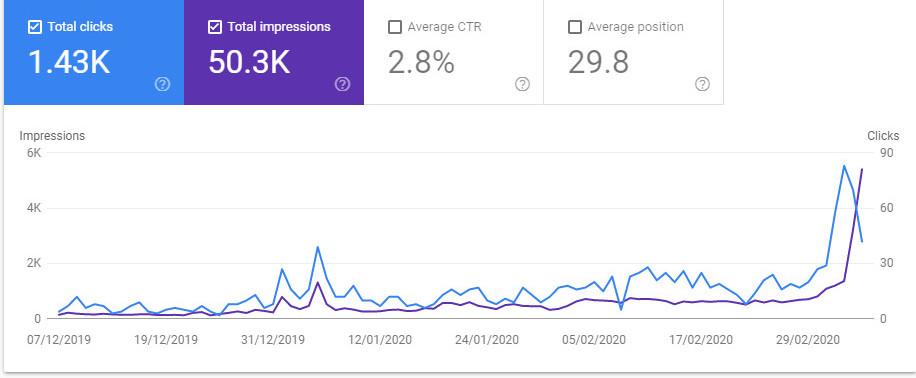 Impressions have grown over 500% in less than a week. I wouldn't mind having that kind of growth for a while :D.Now the reality is that I just hit a lucky keyword but it does go to show that you will never know which piece of content will drive a ton of traffic to your site. They only way to find out is to create more content and hope for the best.