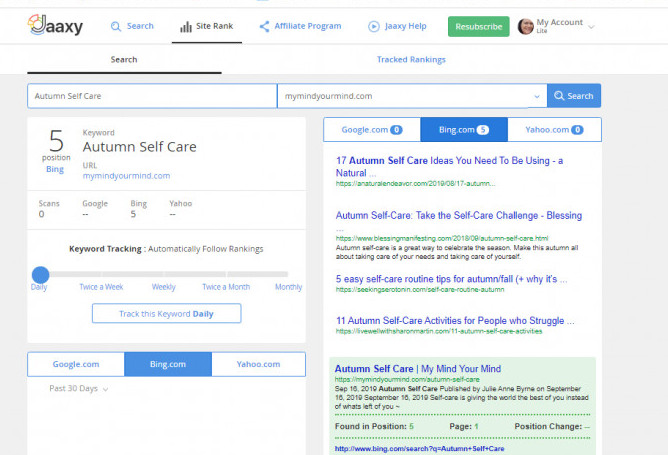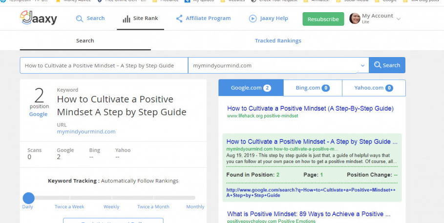 Starting from the most recent written article to the very first article I wrote and published on 19th August 2019 I checked all 31 posts on Jaaxy to find out exactly which page on Google/Bing/Yahoo I appeared and below I am delighted to declare my findings;