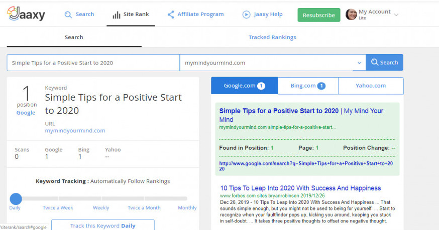 I am even more thrilled and excited to learn that my first article of 2020 is ranked 1st on page 1 of both Google & Bing...a wonderful affirmation that I am on the right track…
