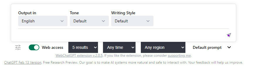 You can choose whether of not you want web access or just the ordinary chatgpt. And as you see you have some drop down menus to play with.