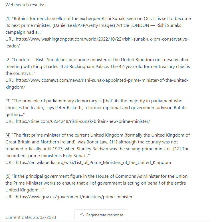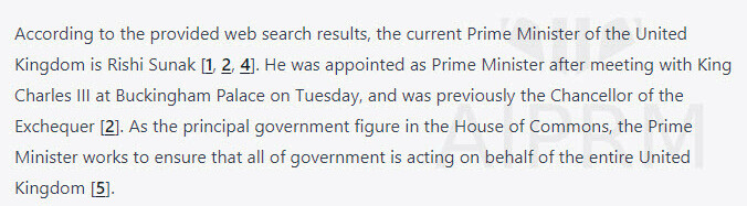For example, normally ChatGPT thinks Boris Johnson is the PM of the UK.