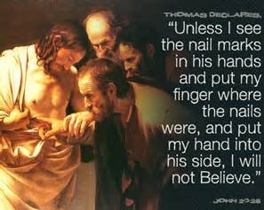 You see, we all have faith, we have faith we will wake up tomorrow morning after a night of fitful sleep. You may not call it faith, but that's what it is. If Thomas teaches us anything, it is that faith does not stand alone...even if one sees a miracle take place in front of them, doubt creeps in and your mind says it's an aberration. Even if Jesus came down here on earth and performed a miracle front of your eyes, you would find some reason not to believe that miracle, just like Doubting Thomas!