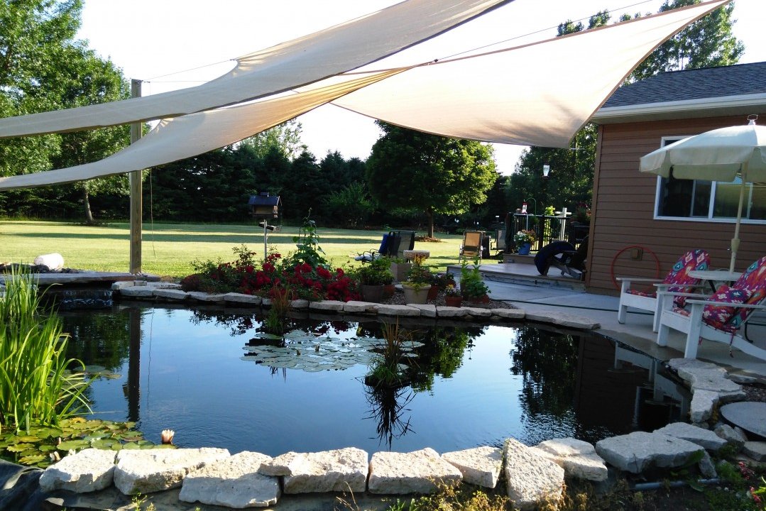 We dug the hole in 2014. We filled it with water. We added a skimmer, a bio filter, a UV filter and ion filter. We planted some aquatic plants for further filtration. We installed a bottom drain that circulated water through a series of jets positioned strategically around the pond. We gathered flagstone and rocks to give our water hole a more natural appearance.