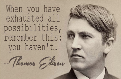 Thomas Edison was a man who was truly tenacious, he had no concept of how to give up. He failed to invent the light bulb hundreds of times, most "normal" people who had given up and said that the electric light bulb was not possible. Thomas Edison saw every failure as an opportunity he kept thinking if he could eliminate all the things that don't work then he could eventually find a way to make it work.