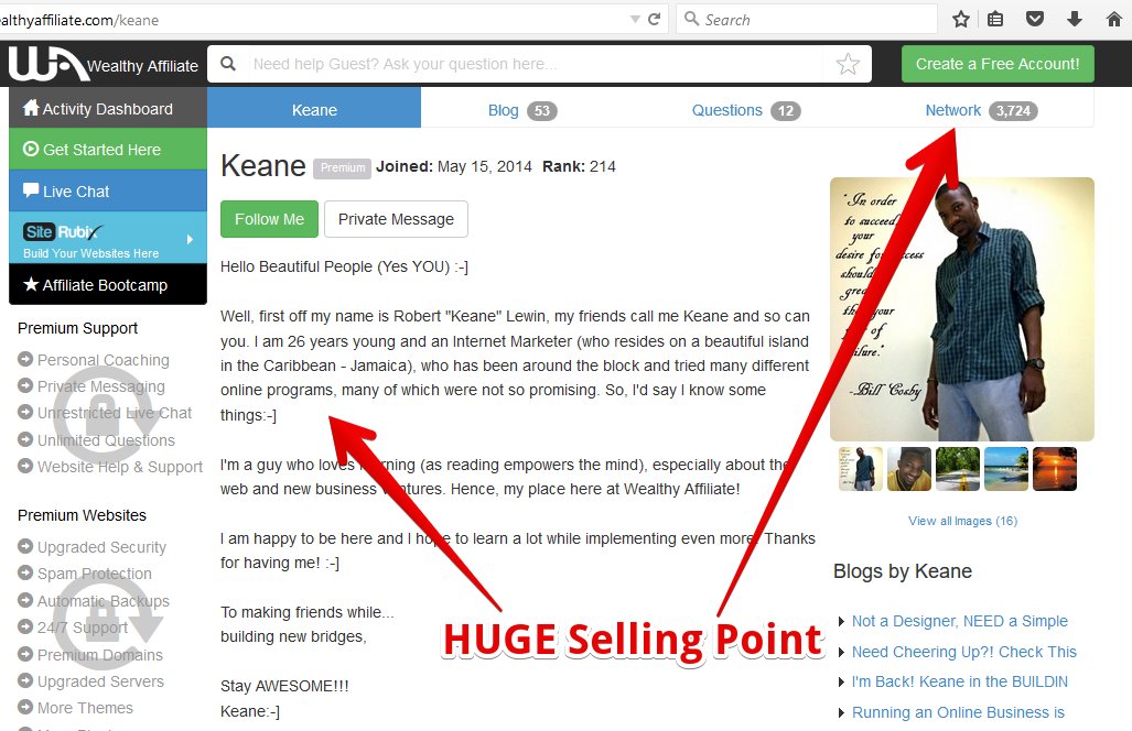 But what is it that you have? Great question. I'm glad you asked! You see this pic of Keane above. Yes? Awesome! Why awesome? Well, awesome primarily because Kyle and Carson have given us the "ability" to create amazing profiles - HUGE SELLING POINTS - each and everyone of us is the access to WA; with the capability of creating professional looking website through the aid of WORLD CLASS training materials at our very disposal. But, is this all they gave us? Simple answer: "NO!"