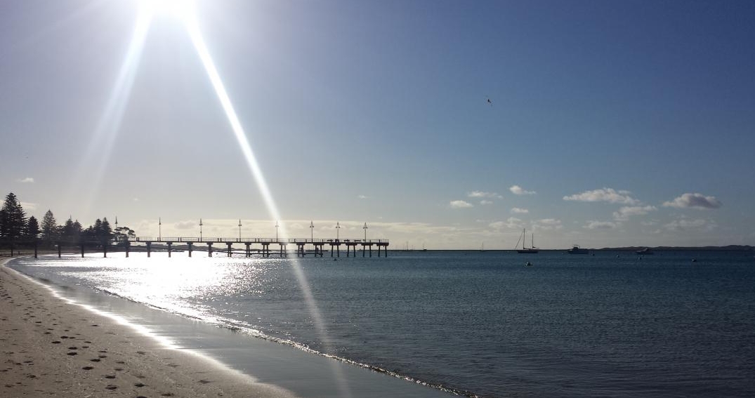 This is just a very short post to say I will be back soon for my short break to attend my Mum's 90th birthday in Western Australia. Below is a picture of one of the beautiful beaches nearby. We walked along here this afternoon and had dinner by the beach then watched the sunset.