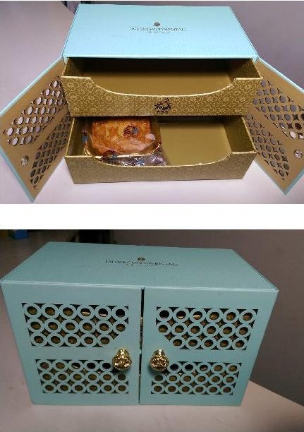 Chineses like red for good luck especially during festive season. I have this inclination of collecting special beautiful mooncake packaging and reuse them for storage boxes. The 3 boxes I received were ordinary standard square red box. So nothing great. However, one came with a special packaging in blue shade purchased from Intercontinental Singapore. Looks like a jewelry box.