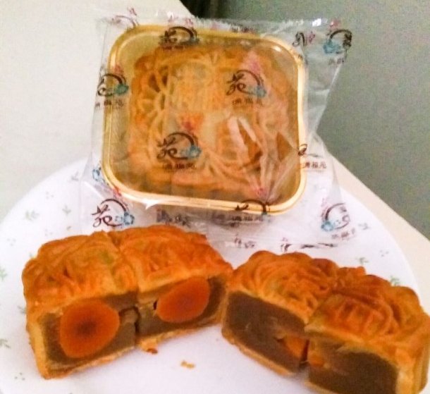 This year the economic situation in Singapore is not that great just like the rest of the neighbouring countries. The Mid Autumn Festival came and passed at the blink of the eye. This year my family received 4 boxes as gifts. Only one came with a special packing. The mooncakes are sold with various type of stuffing such as bean paste and lotus seeds. Special paste such as green tea or even durian favour are available from specialty shops. Normally it come standard as plain or with a single salted egg yolk or double egg yolks which is as shown below.