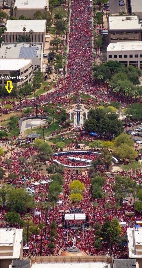 I got caught up these past few months in a sea of red and never looked back. (I am at the yellow arrow.) I took a hiatus from my website, my blog posts, my life at times to stand up for something that I believe in; children. I rallied with the most compassionate group of people to fight for proper funding for education in the State of Arizona.
