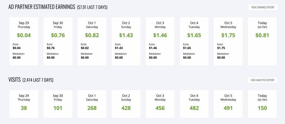 These are only the first 7 days too! Since Ezoic is a platform that utilizes AI to make ads better, it can take some time to optimize based on the data it's getting.