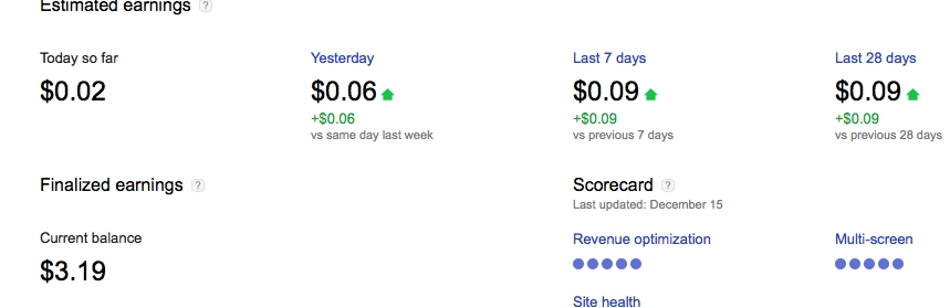 But - it IS a big deal! I've earned a buck-something from AdSense, too - it was very exciting. ALSO - if you use Shareaholic, you can earn from there, too - they post ads OR your own content, and if a visitor clicks on the ads, you make money!! You can set it to give them the money, or to give YOU the money, and how many of the six little "You might also be interested in" are either ads, or your own related content.