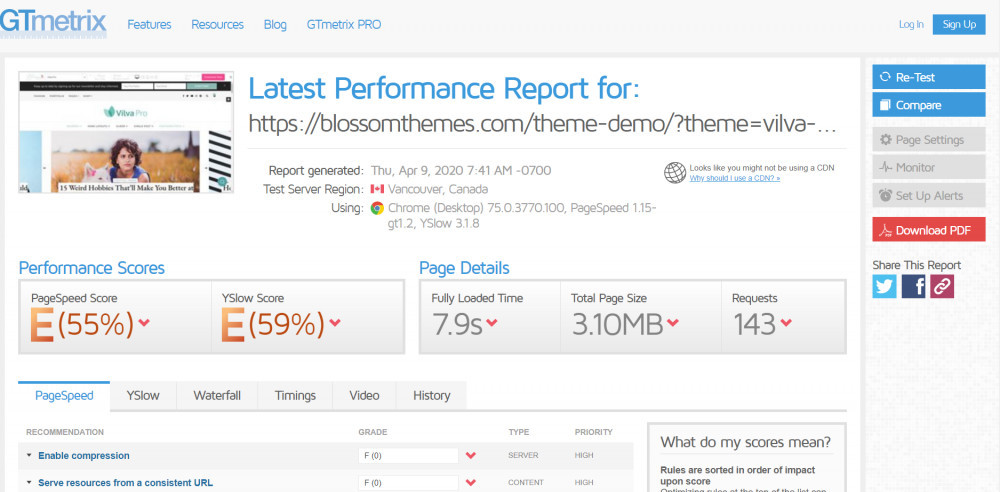 And this is just the theme demo. When you use this theme with a website with your blog content, more images and plugins, your website will be even slower than the demo!