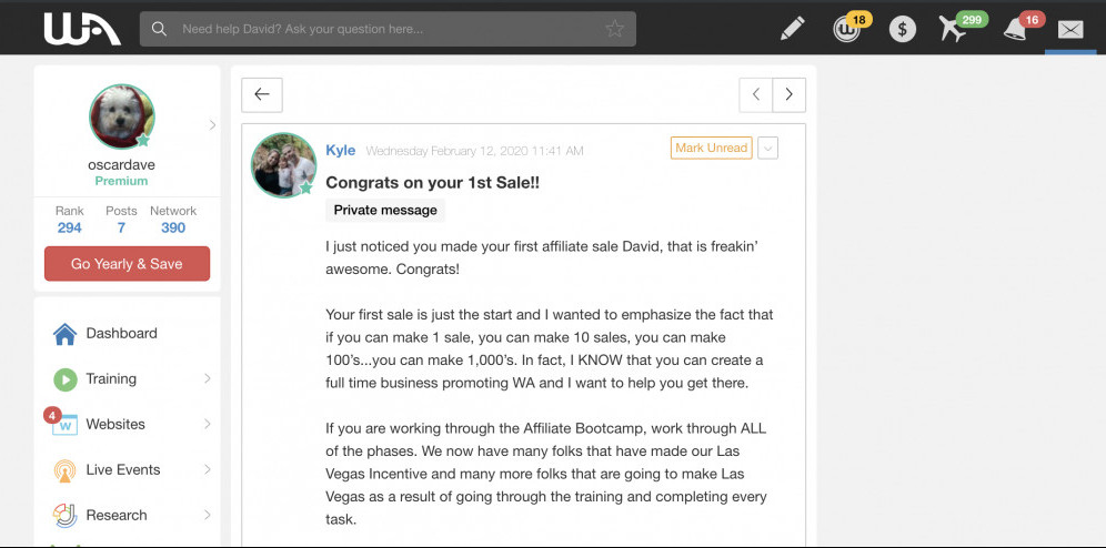 Soon as I joined premium, my route was the affiliate bootcamp. I wanted to promote WA and make it to vegas to meet the super affiliates so that I could learn how to excel in niche marketing, with the niche sites.