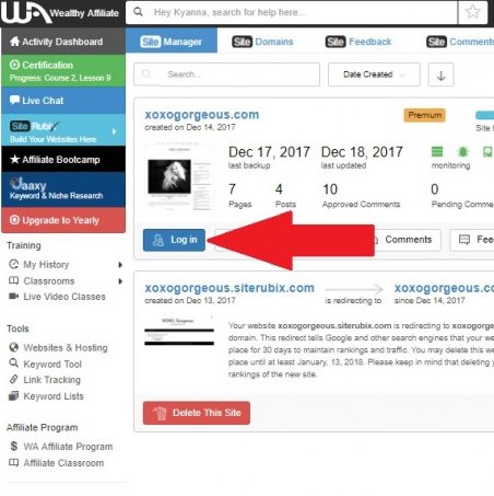 The first thing you will need to do is log into your admininistrative office of your page. You can do this directly through SiteRubix. By clicking on the SiteRubix button then clicking "Site Manager."