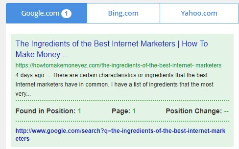 Today I glanced at Jaaxy to see where my post had come to rest... And it was back at position one in Google, but also position one in Yahoo and position 7 in Bing!