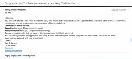 I had 40 new website visitors this morning before I got out of bed and apparently one of them decided to give Jaaxy a try. Now it's not income yet, it's just the trial membership. But it's a conversion! I'm crying and I'm shaking because I'm super excited that these two taught me how to make it work. I'm really starting to believe I can do this now. I have a bad habit of giving up too soon.