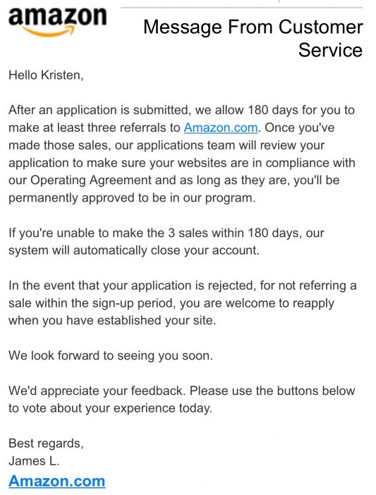 Hello Kristy, yes that is the same message I received from Amazon. Yes they did close my account due to lack of referrals or sales. The positive is that I can resubscribe once I am ready.