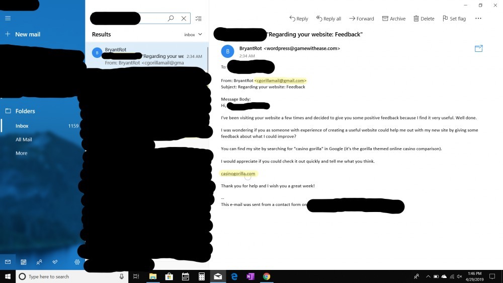 Could this be a legitimate inquiry or is it more spam? Let me be honest I was drawn in by the title "regarding your website feedback". This was because I have left feedback on some websites but that has only been strictly within Wealthy Affiliate's Site Feedback section.