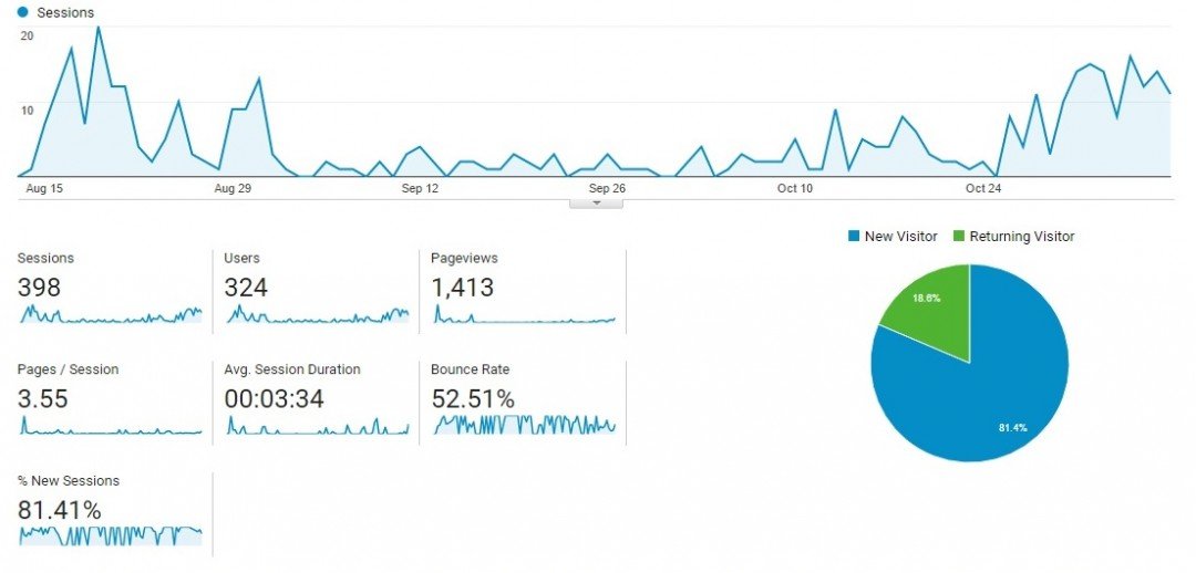7. For a starter, got 1413 pageviews by 324 users in 398 sessions in 3 months.