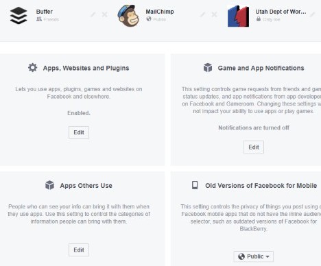 You can further edit your setting by clicking on "Apps, Websites and Plugins" - "Games and Notifications" - "Apps Others Use" - "Old Versions of Facebook for Mobile" as seen in the photo below. From here you can stop Facebook from sharing anything, which is a bit drastic.