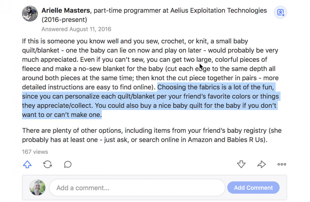 I learned a great deal on Quora quickly, by doing a few searches related to "sewing quilts", "how to sew a quilt". One thing that became apparent is that the "personalization" element of sewing your own quilt is the most exciting part...so that is something that I would put emphasis on in my content.
