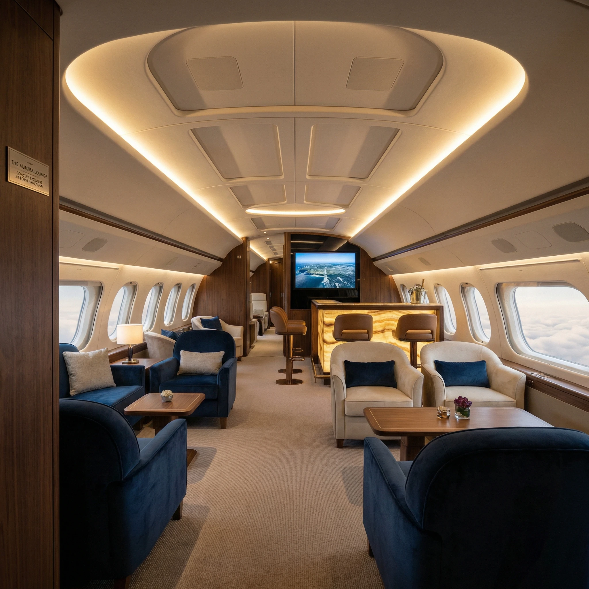 The idea was to remove the usual airplane feel and replace it with something calmer and more refined. Every part of the interior is meant to feel intentional, so the space works as a lounge first and an aircraft second.
