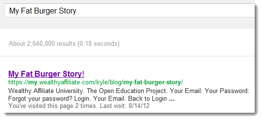 You will see that this is indexed in Google if you type in “my fat burger story” (as shown below).