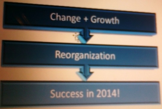 Reorganization is a necessary reaction to change. Change is necessary for growth. Without growth, life would be static and dull. People who want something better but are resistant to change, will have a hard time achieving their goals. Say goodbye to 2013 and all the failures and mistakes that you made. Say hello to 2014 and get reorganized and be prepared to meet new challenges that may come up in your journey on the road to success.