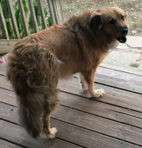 We have a dog, half German Shepard and Half Great Pyrenese. Needless to say she is a big dog and is now around 10 years old.