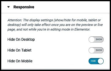 3. Remove anything from your mobile view that will hinder the menu or the user’s ability to read content. I use Elementor page builder. But for any page builder there should be a responsive option. If not then do not put something on your site that will hinder the mobile view.