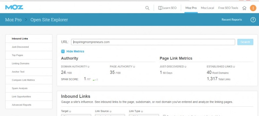 - Built my Site's Domain Authority Over Time (DA currently 24 with a Home Page Authority of 35).