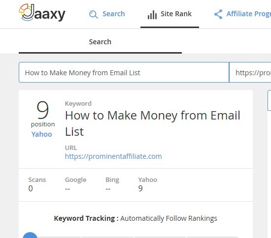 Out of curiousity I decided to see my ranking in Jaxxy for this new keyword a few minutes ago. To my surprise, It's already ranked on the No 9 spot on Yahoo! Whao!!