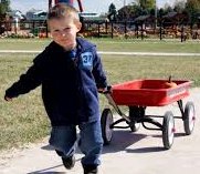 He places rocks in his toy cart, and as soon as he spotted his father pulling up the driveway, he started to pull his cart fill with rocks up the hill, showing his father how strong he is.