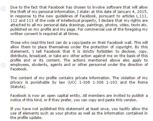 I chuckle when I see people on Facebook posting or sharing that crazy disclaimer that tells Facebook they don't have the right to share any of their information with anybody: