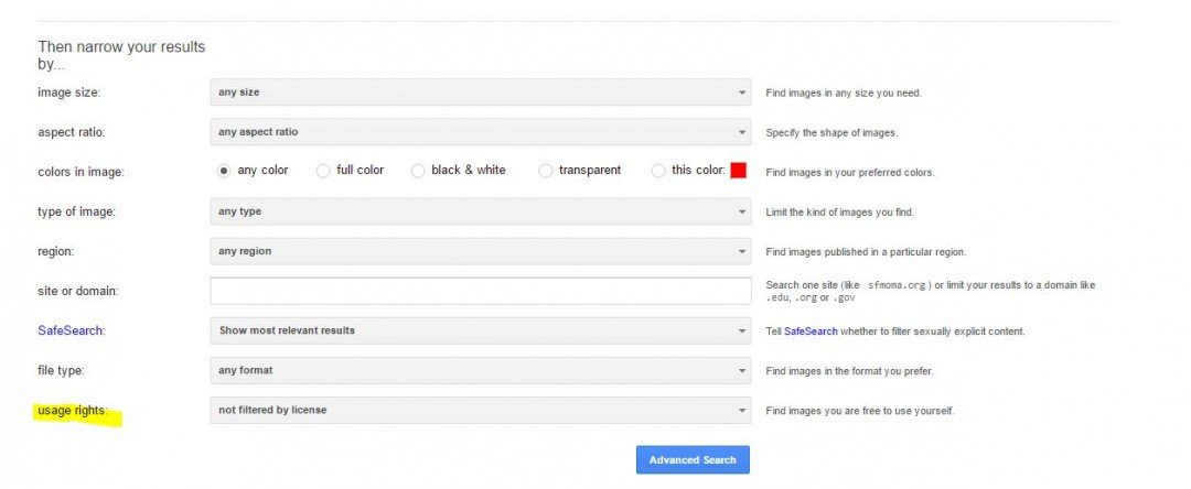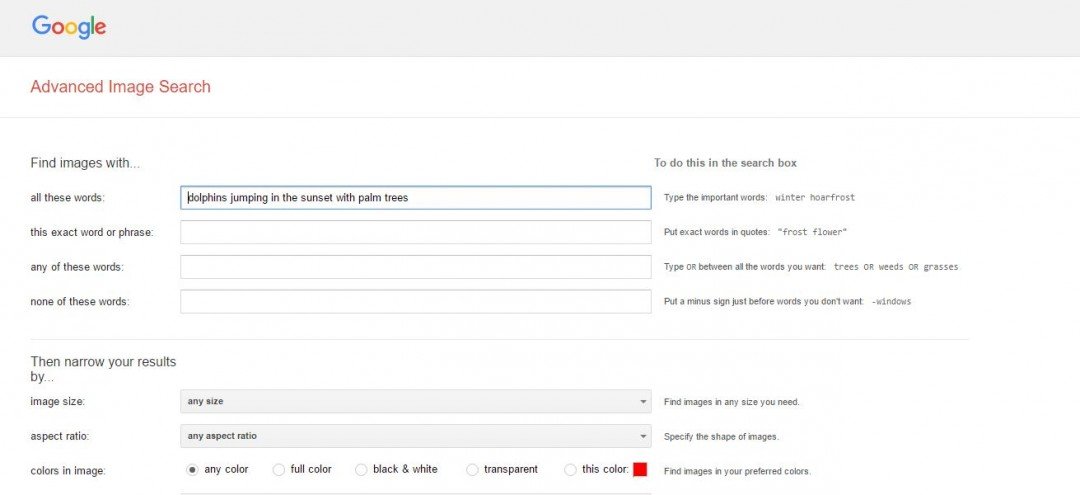 You can also search by name, size, aspect ratio, colors in image, type of image (clip art, picture, animated, etc.…), region, and file type (jpg, png, etc….) on this filter page.