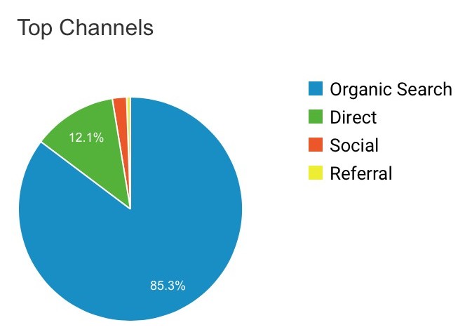85% of my traffic is organic and next highest is 12% of direct traffic which is mostly from my email list.