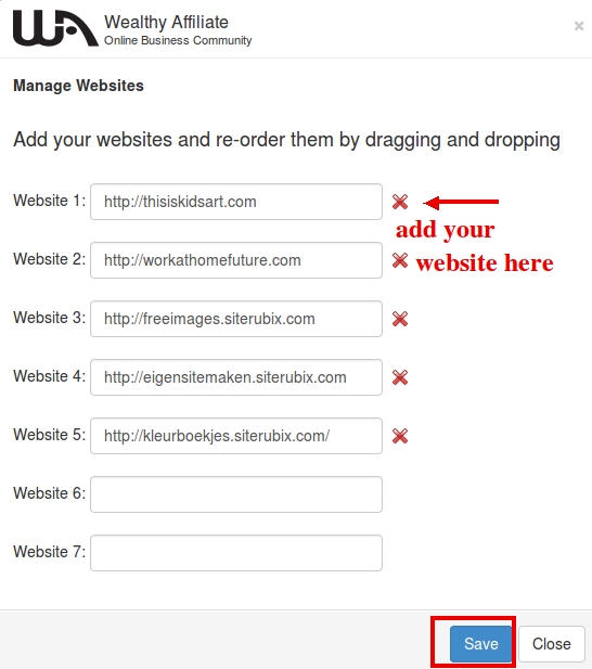 Ken, on the right side where they list your blogs and below that it says manage my site. Scroll down but you should be on your profile screen. Click on the blue manage my site box and it will take you to where you can add your website. Be sure to click save at the bottom after you add it.