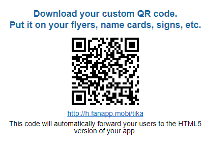 After creation, you will get your own QR code and you can use and share your app anywhere you want.