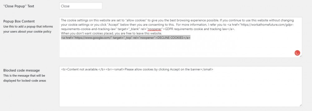 Hi Loes, I'm attempting to setup my plugin and was wondering if the "GDPR requirements and cookie tracking law" page that you send visitors to has the whole GDPR written out or do we only need to state certain parts of the GDPR that apply to the data subjects themselves and what they can request from us.