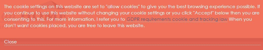 Loes, my guess is that most of the visitors will not care. So is there an option in this plugin to ignore the "accept" popup and that it consequently vanishes by itself? I see in your site that I have to click on 'accept' before it disappears.