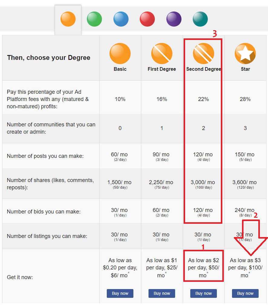 With 50 likes, comments and/or repost, 2 postings and 1 bid and 1 list (advertisement) you have all 4 levels filled, and will earn your bonus.