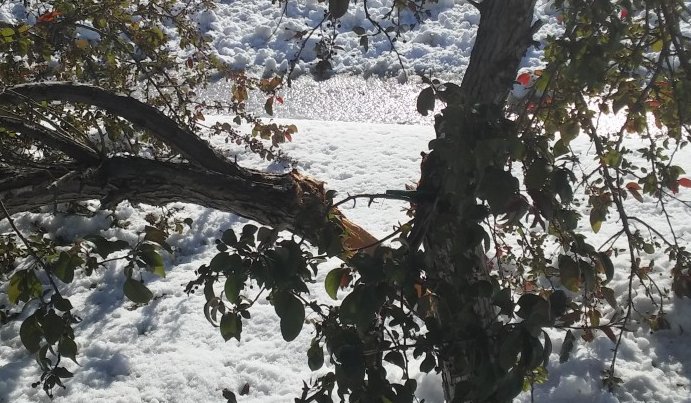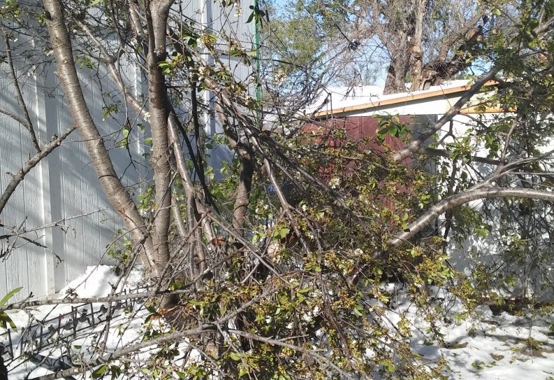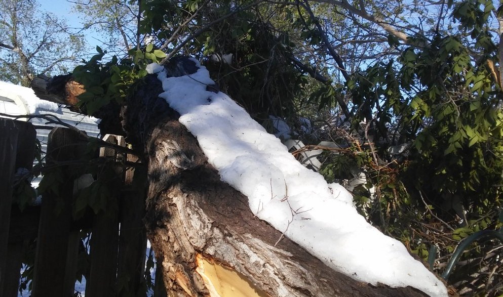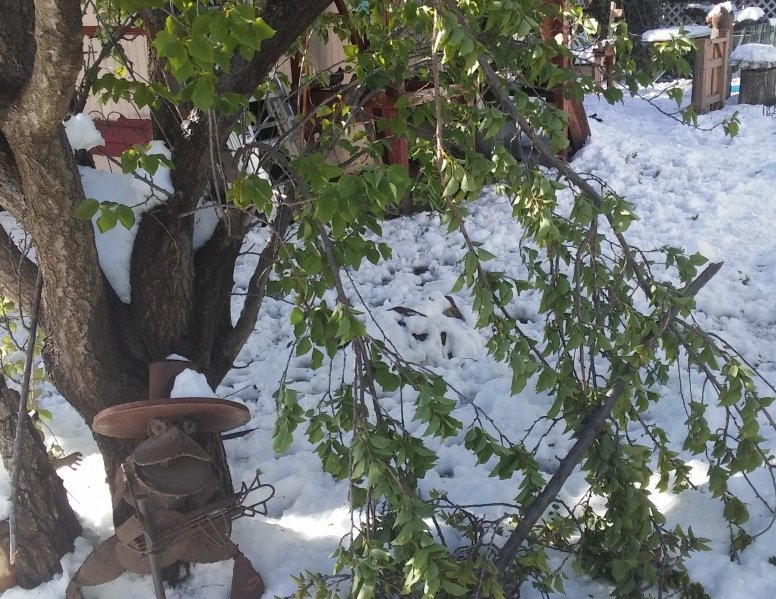 Spring snow is more heavy. Trees often can't support such heavy load. It's a pity for the fruit trees. It will take years to recover, if at all.