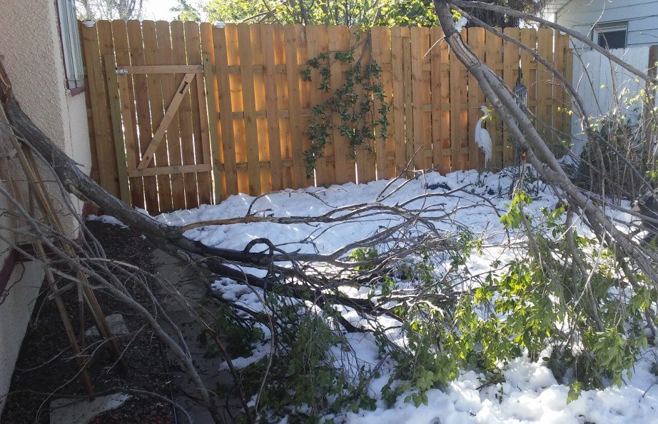 April 29th was just the beginning, the 30th she dropped 12 inches of snow. This morning I saw the damage that she caused.